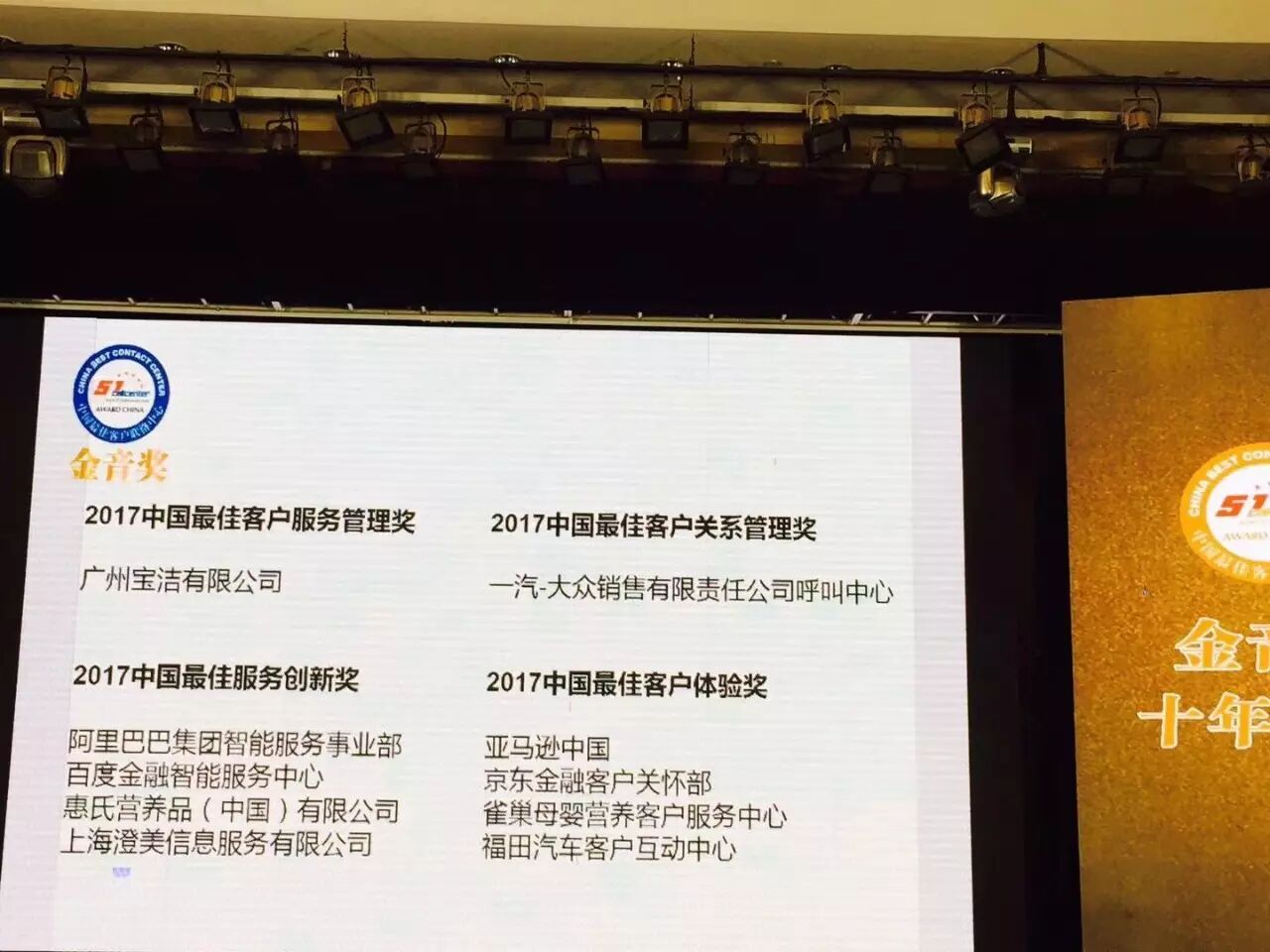 2017(第十届)中国大数据应用与客户联络中心国际峰会暨“金音奖十年”2017中国最佳客户联络中心与CRM颁奖典礼于9月21-22日在山东淄博隆重举行。2017“金音奖”中国最佳客户联络中心与客户服务获奖榜单同期发布,中国中央电视台做了采访报道。