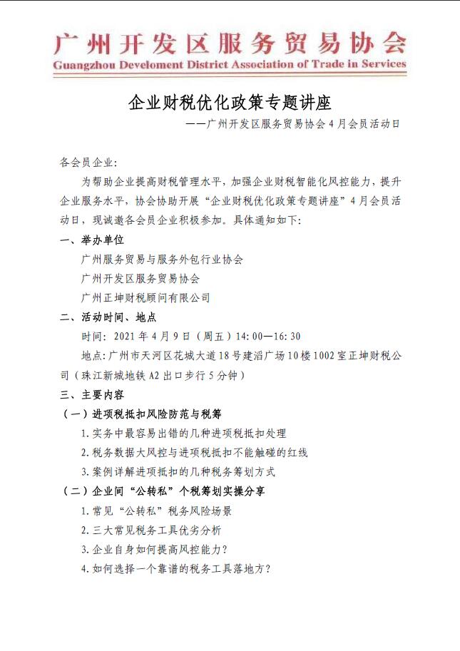 企业财税优化政策专题讲座 ——广州开发区服务贸易协会4月会员活动日